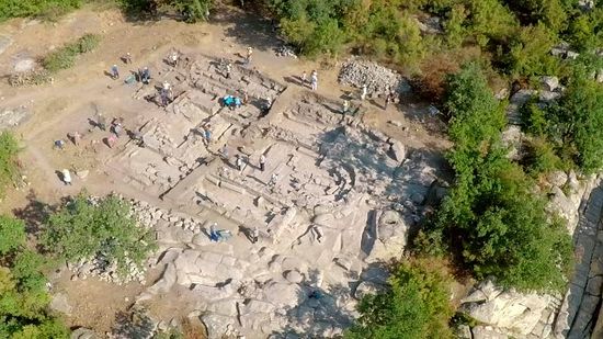 An aerial view of the newly discovered Early Christian basilica in the rock city of Perperikon in the Eastern Rhodope Mountains in Southern Bulgaria. Photo: Archaeological Team / Sega daily
