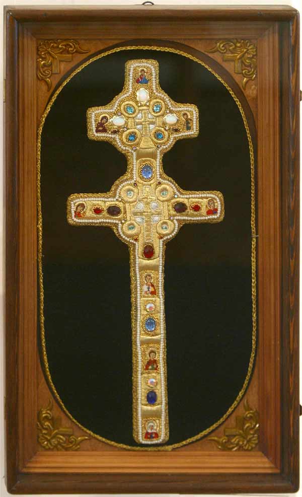 The Cross of St. Euphrosyne of Polotsk was made by goldsmith Lazarus Bogsha in 1161. The Cross served as the Arc for keeping great Christian shrines: a particle of the True Cross with a drop of the Savior's blood, particles of stones of the Holy Sepulchre and the Tomb of the Virgin Mary, relics of Protomartyr Archdeacon Stephen, St. Pantaleimon and a drop of blood of Martyr Demetrius of Thessaloniki.