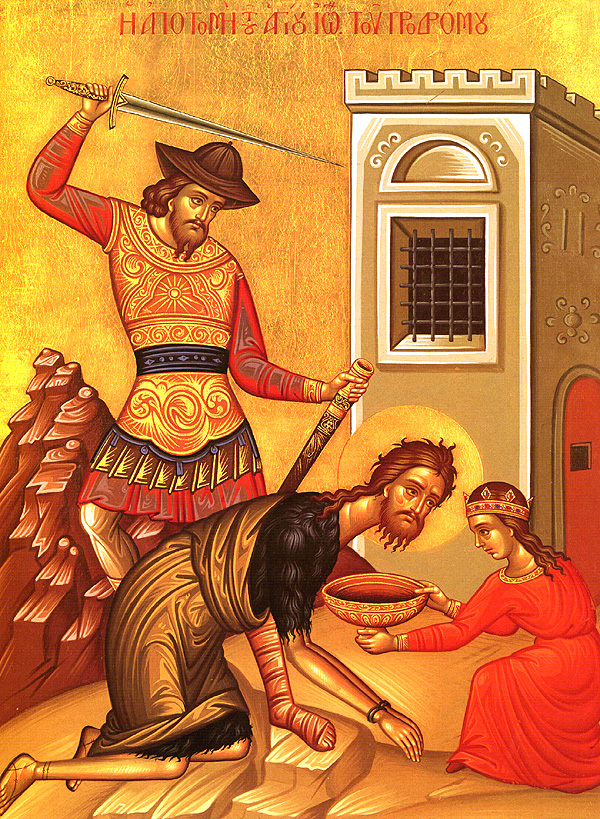The Beheading of the Prophet, Forerunner of the Lord, John the Baptist: The Evangelists Matthew (Mt.14:1-12) and Mark (Mark 6:14-29) provide accounts about the martyric end of John the Baptist in the year 32 after the Birth of Christ.