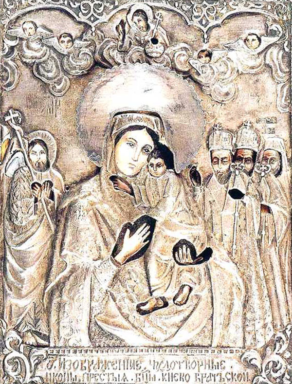 The river carried the icon to the Podol section of Kiev, where it was joyfully taken up by the Orthodox and with due reverence transferred to the Bratsk (Brotherhood) monastery. The icon is described in the records of church property of the Kiev-Bratsk monastery, made in the year 1807.