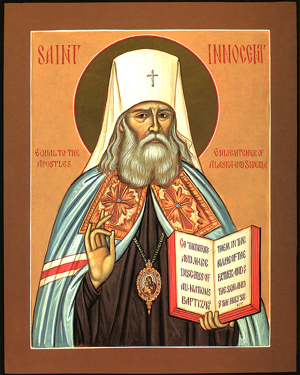 You evangelized the northern people of America and Asia, / proclaiming the Gospel of Christ to the natives in their own tongues. / Holy Hierarch Father Innocent, / enlightener of Alaska and all America, / your ways were ordered by the Lord! / Pray to Him for the salvation of our souls in His heavenly Kingdom!