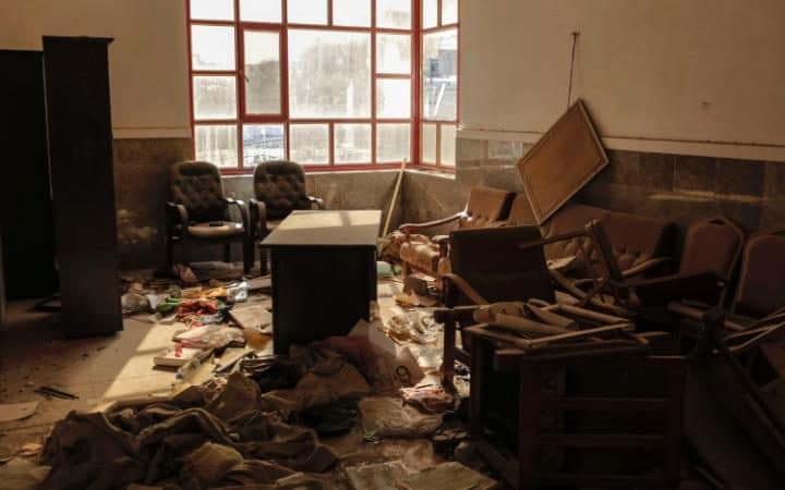 Hymn books lay scattered on the ground, the pews upturned. Graffiti scrawled on the walls.