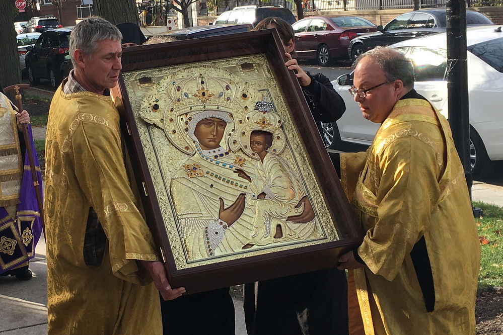 “Prior to Wednesday’s service, Bishop Mstislav carefully removed the packing materials used to protect the icon,” said cathedral member Larisa Fetterly. “A faithful reproduction of the original, the icon is covered with a decorative sterling silver cover, or ‘riza,’ embellished with pearls and precious gems.”