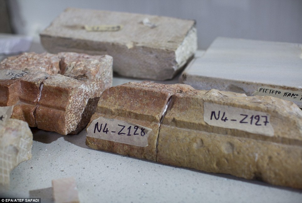 Stones taken from the tomb, pictured. The tomb has now been resealed and will probably not be opened again for hundreds, possibly even thousands, of years