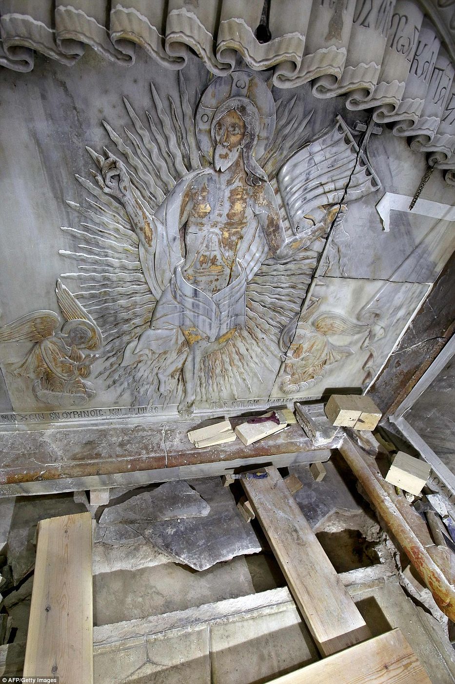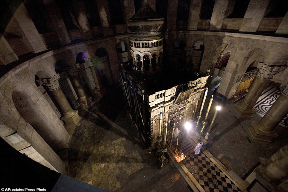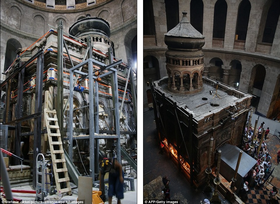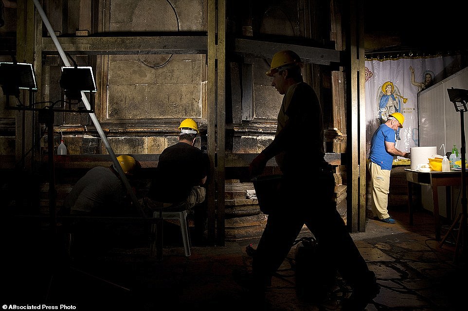 This photo shows what the tomb of Jesus in the Holy Sepulchre church has looked like for the past 200 years. It was last reconstructed in the early 19th century after a fire destroyed it. But repairs were long overdue as the structure it was damaged in an earthquake in 1927