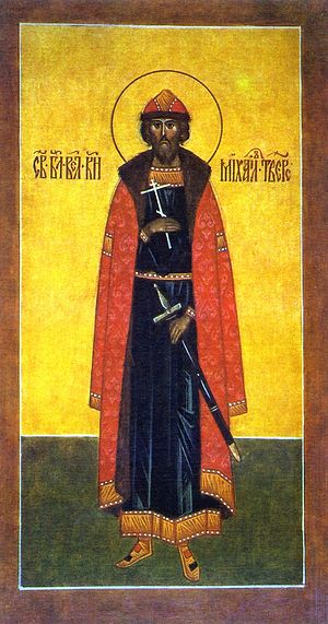 On November 24, 1632 the incorrupt relics of Saint Michael were uncovered. The holy Prince has often helped the Russian land. In 1606 the Polish and Lithuanians besieging Tver repeatedly saw a wondrous horseman ride out from the city upon a white horse with sword in hand , turning them to flight. Later, when they saw an icon of holy Prince Michael, they affirmed with an oath to Archbishop Theoctistus of Tver that the horseman was indeed Saint Michael himself.
