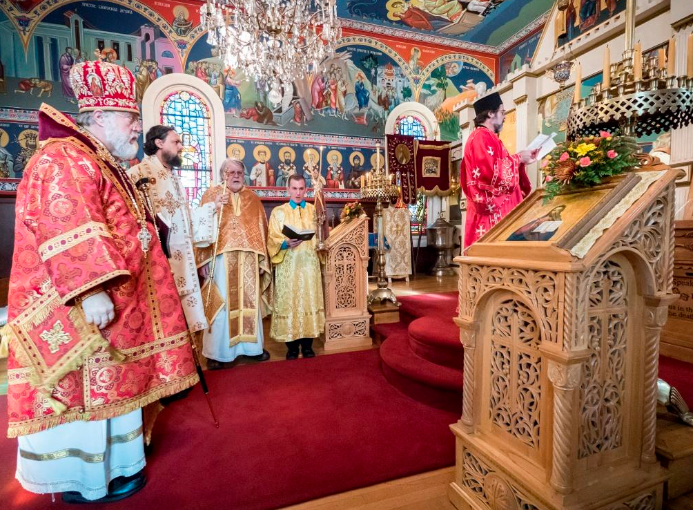 Sunday morning, his Grace Bishop Maxim led the local clergy in a Matins service at 8:30 am. His Eminence Archbishop Benjamin, Very Rev. William Weir (Holy Assumption S.O.C., Fair Oaks) and Rev. Andrew Jacobs (Elevation of the Holy Cross, OCA, Sacramento) joined Bishop Maxim and the local clergy, Fr. Steve, Protodeacon Triva Paul and Deacon Dragan Stojanovich, for the Divine Liturgy at 9:30 am.
