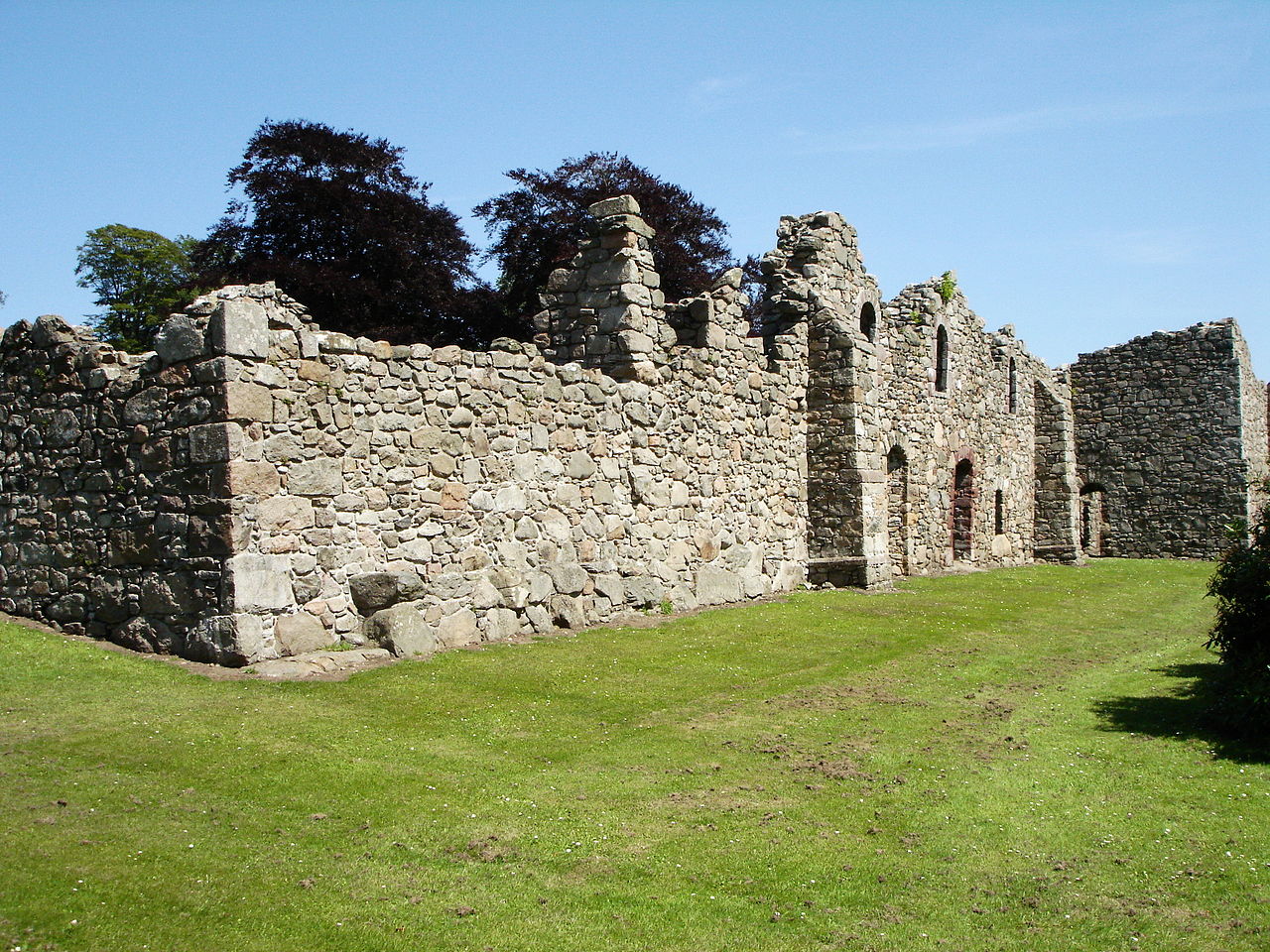 As for the greatest abbey founded by Drostan in Deer, it flourished for several centuries. In the thirteenth century a new Catholic Cistercian Monastery of the Mother of God was founded close to this site and it existed until the Reformation. Today there are two villages in the area: those of Old Deer and New Deer lying seven miles from each other. Nothing is left of the original Celtic monastery of St. Drostan, but there are ruins of the Cistercian monastery in Old Deer. The ruins are located half a mile west of the original St. Drostan’s Abbey. The village’s main street is dominated by the church known as New Kirk. It was built in the 1780s to replace a much older church (Old Kirk) the origins of which may be connected with St. Drostan directly. Ruins of the Old Kirk lie next to the New Kirk. As for New Deer village, it once had a chapel built by the Cistercian abbey which no more exists.