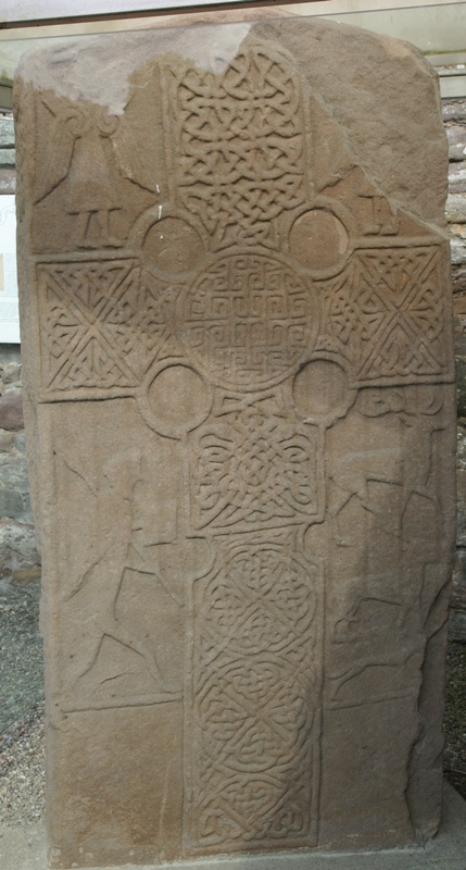 There is a church of St. Fergus in Glamis, and nearby very early stones can be found—one of them is called “the Pictish stone.” Glamis is also famous for the fact that Elizabeth, the Queen Mother (1900-2002), the mother of the present Queen Elizabeth II, spent most of her childhood in the local castle. Recently St. Fergus’ well was restored in this village and the saint’s cave nearby is preserved too. Close to Glamis there is the ancient village of Eassie. It has an old and roofless unused parish church of St. Fergus. It was last rebuilt in the sixteenth century but in the nineteenth century was left derelict, while a new church was built not far away. The old Eassie church has a unique treasure: an early “Eassie Pictish stone”, which is a cross slab with sculpted depictions of angels, people and animals along with traditional Pictish features.